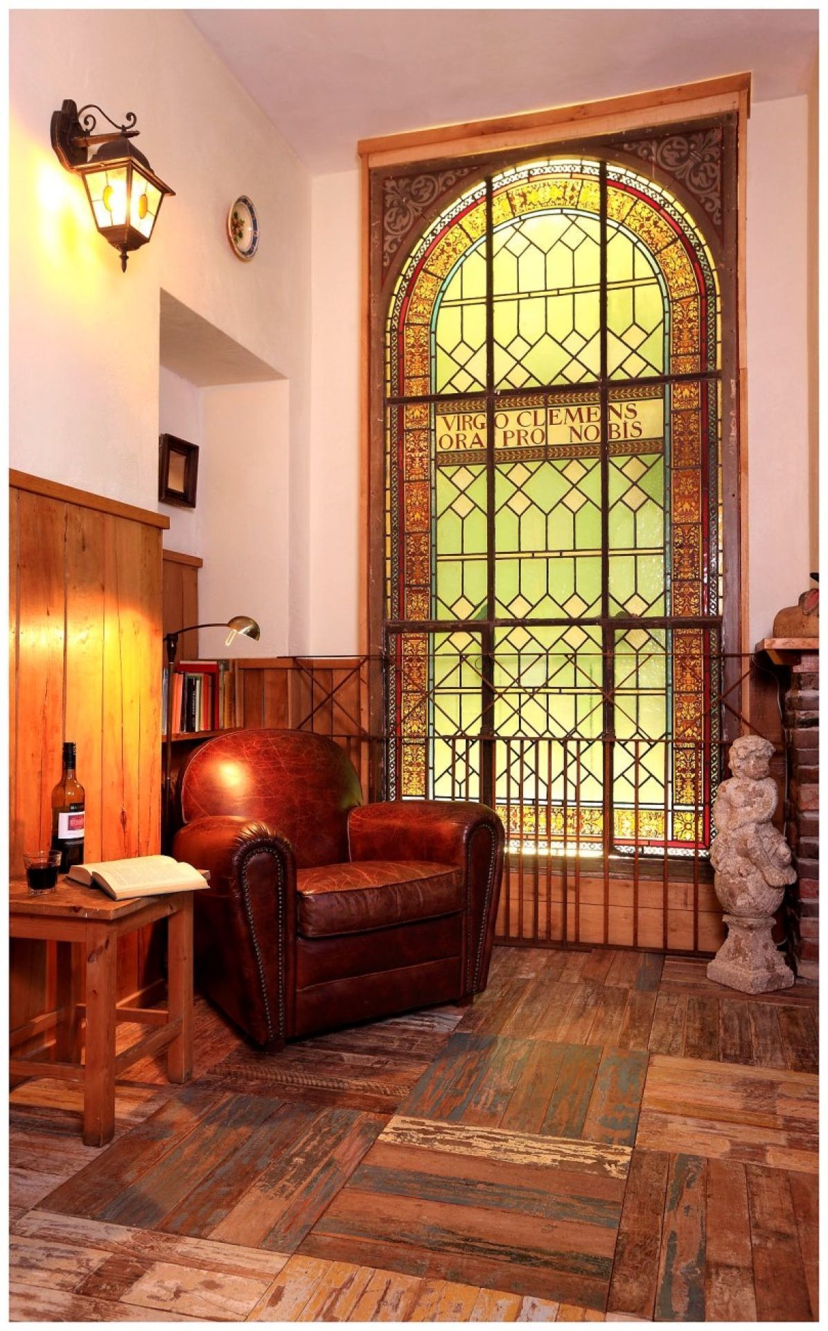 - Kitchen with large castle dining room table and pulpit.